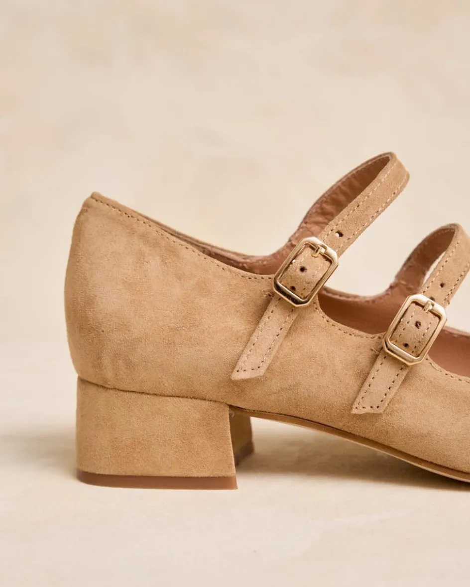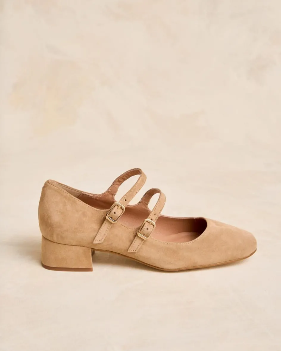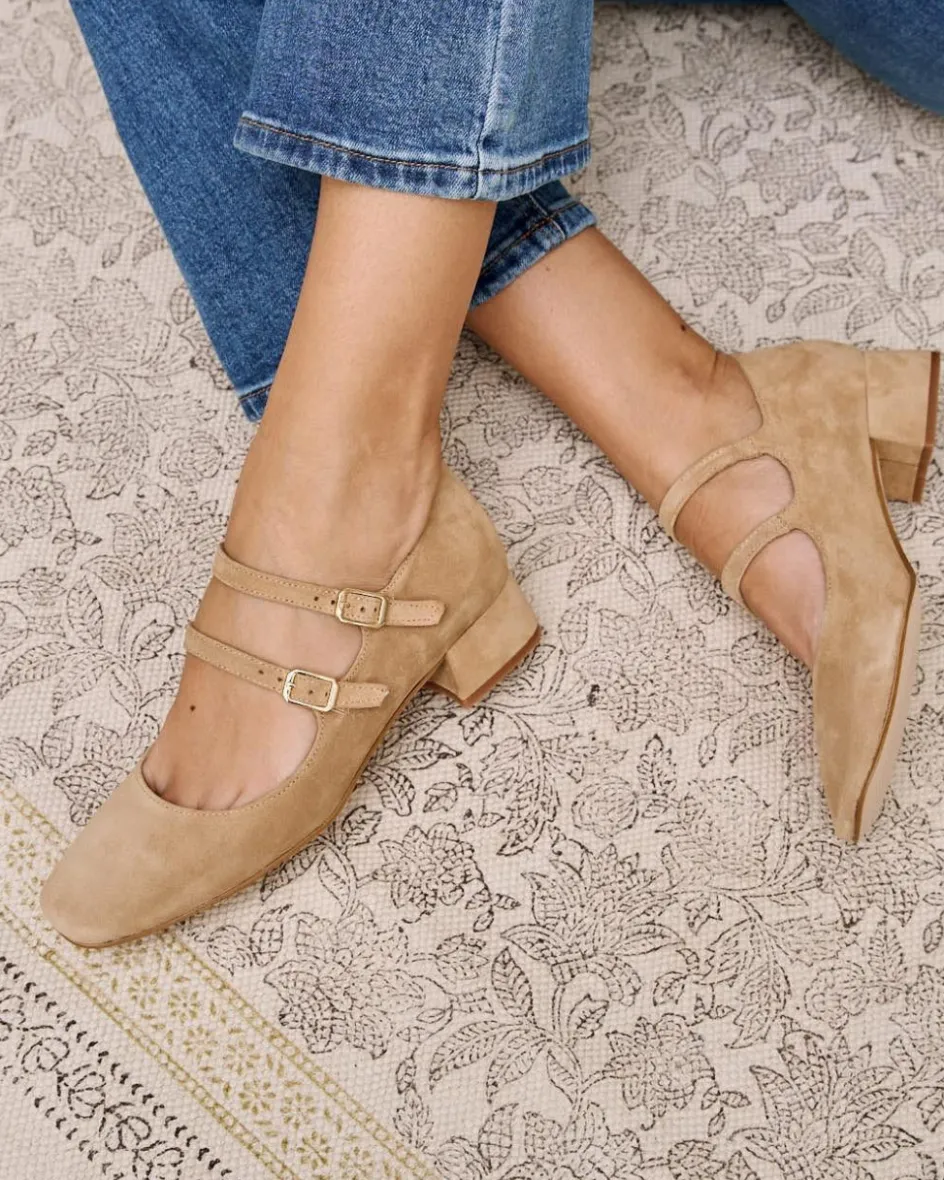 Bailarina de tacón en color beige. Punta redonda. Escote redondeado. Cierre en el empeine mediante dos correas regulables con hebilla cuadrada. Tacón ancho para mayor comodidad. Un zapato muy femenino y elegante para los eventos de esta temporada.