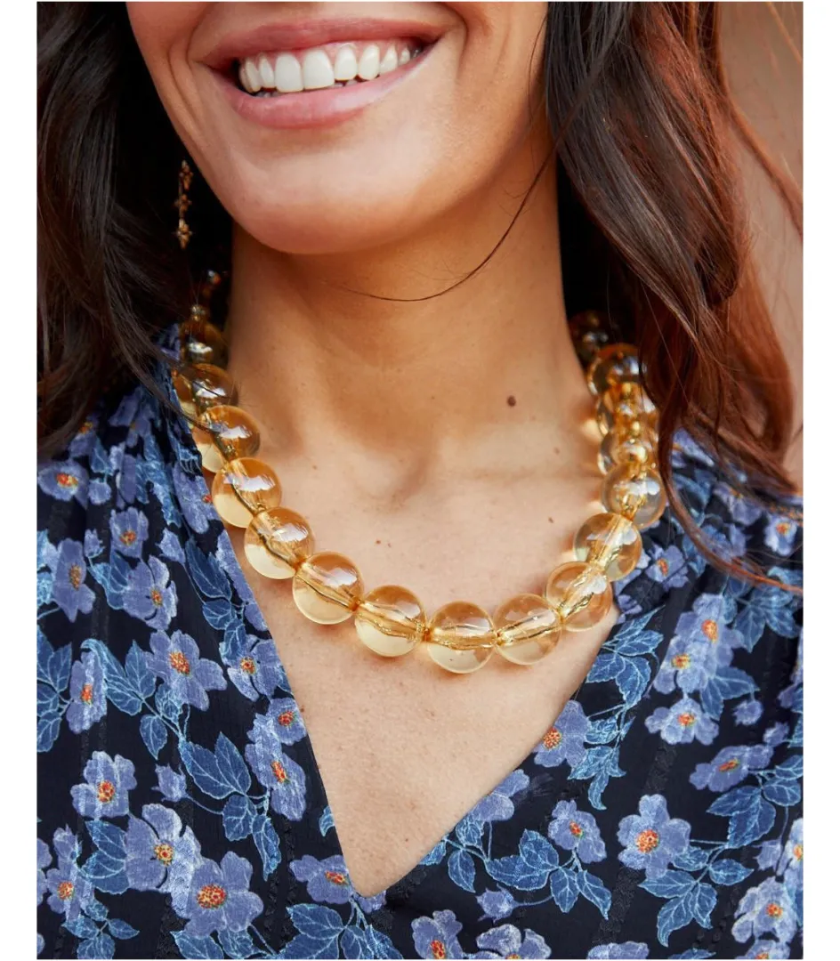 Collar largo de bolas en color ocre.