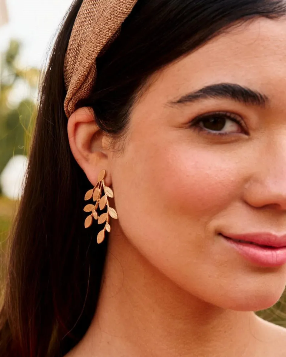Pendientes cortos de hojas en dorado. Pendientes con diseño rígido y muy ligeros. Cierre mediante tuerca. Un pendiente ideal para darle un toque diferente a tu look.