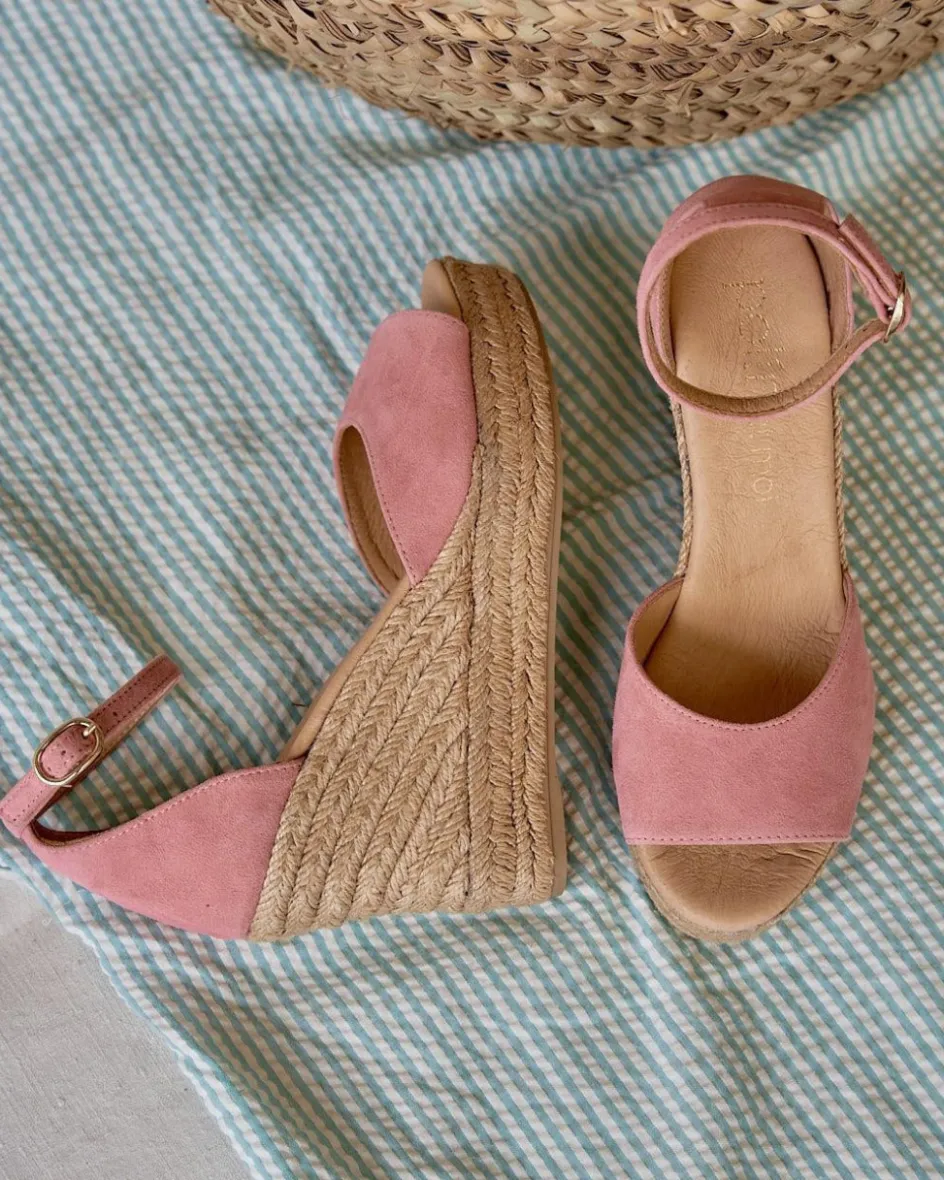 Sandalia en piel de serraje de color nude. Escote redondeado. Talonera y tobillera de piel de serraje en color nude con hebilla. Interior de piel. Fabricación española de yute natural. La plantilla tiene una almohadilla para mayor comodidad. Una sandalia perfecta para todo el día e ideal para combinar con tus prendas favoritas de esta temporada.
