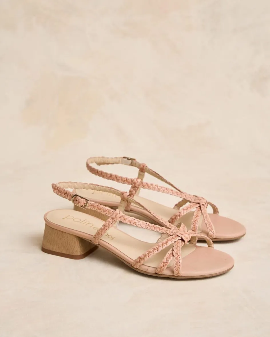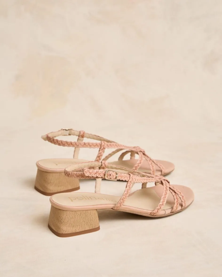 Sandalia con tacón trenzada de piel en color rosa. Empeine con triple cinta trenzada con detalle de nudo en el centro. Talón sujeto con cinta de piel con hebilla para un mejor ajuste. Pequeño tacón cuadrado con efecto madera. Una sandalia cómoda y muy versátil para el día a día.
