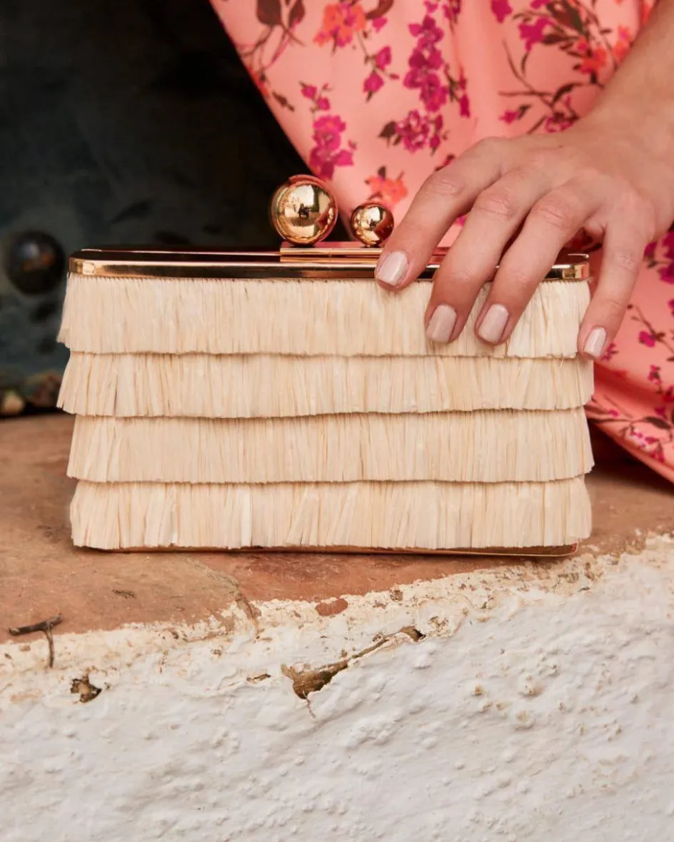 Clutch o bolso de mano en color crudo, con detalle de flecos solo en un lado y el otro lado es de rafia. Bolso con forma rectangular y puntas redondeadas con broche central metálico dorado que permite cerrar y abrir el bolso con facilidad. Ver másVer menos Referencia 183336 MEDIDAS:Ancho: cmAlto: cmCUIDADOS Y MANTENIMIENTO:Para no dañar el el bolso, deberás limpiarlo con un paño de algodón seco. Ficha técnica Colores BLANCOS Etiquetas: LES AST20019 – ENVÍOS, CAMBIOS Y DEVOLUCIONES Favorito19 ENVÍOS:Todos los envíos cuentan con gastos de envío, que dependen de la dirección de entrega.• Península y Portugal: 3,50€ | 2-4 días laborables.• Baleares: 6,50€ | Hasta 7 días laborables.• Países de la Unión Europea: 10,95€ | Hasta 10 días laborables.• Envíos a Europa (No UE): 15,95€ | Hasta 10 días laborables.• Resto del mundo*: Aprox 10€ | Hasta 15 días laborables.*NO hacemos envíos a Canarias, Ceuta, Melilla, Afganistán, Bielorusia, Congo, Bali, Myanmar, Nigeria, Rusia, Senegal, Somalia y Ucrania.¡Importante! En periodo de rebajas, los pedidos pueden tardar un poco más de lo habitual ¡Rogamos paciencia!CAMBIOS: ¡El envío con el cambio solicitado es gratuito!Pedidos realizados desde España:Plazo de 14 días laborables desde que recibes el paquete en casa.Pedidos realizados desde fuera de España:Plazo de 20 días naturales desde que realizamos el envío.*La gestión del envío del paquete de vuelta a nuestro almacén corre a cuenta del cliente, haciéndose cargo de los costes de este envío, mediante el courier de su elección o con nuestro servicio de DHL.En el primer trámite de cambio, el envío de vuelta es gratuito (tanto de talla como de producto). Permitimos DOS trámites de cambio, en caso de querer tramitar un segundo cambio, se descontarán los gastos de envío según destino.Una vez recibido el paquete en nuestro almacén, tramitaremos tu cambio en un plazo máximo de hasta 10 días laborables. Recibirás un correo de confirmación cuando este pedido de cambio esté listo para ser enviado.