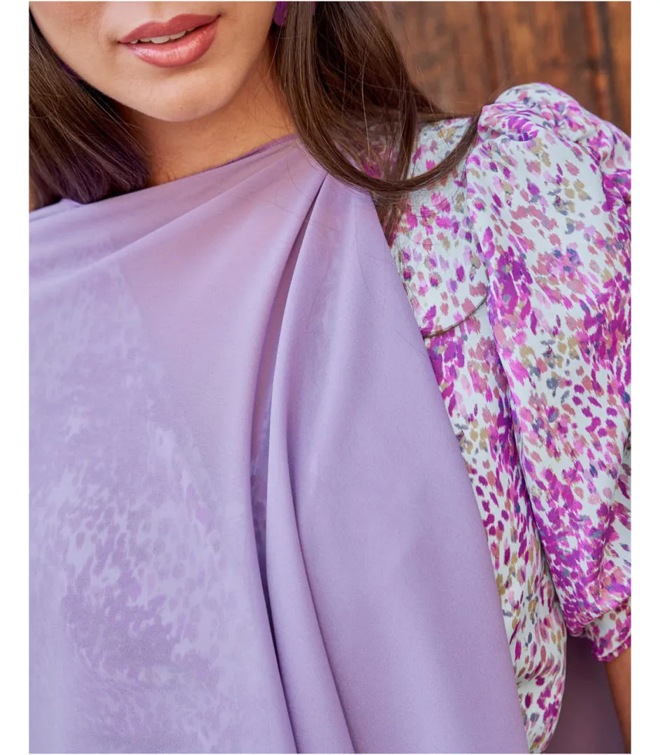 Capa lisa multiposición en color malva, unida. Ideal para acompañarte en todos tus planes o eventos y fácil de combinar con cualquier look. Capa agradable al tacto.