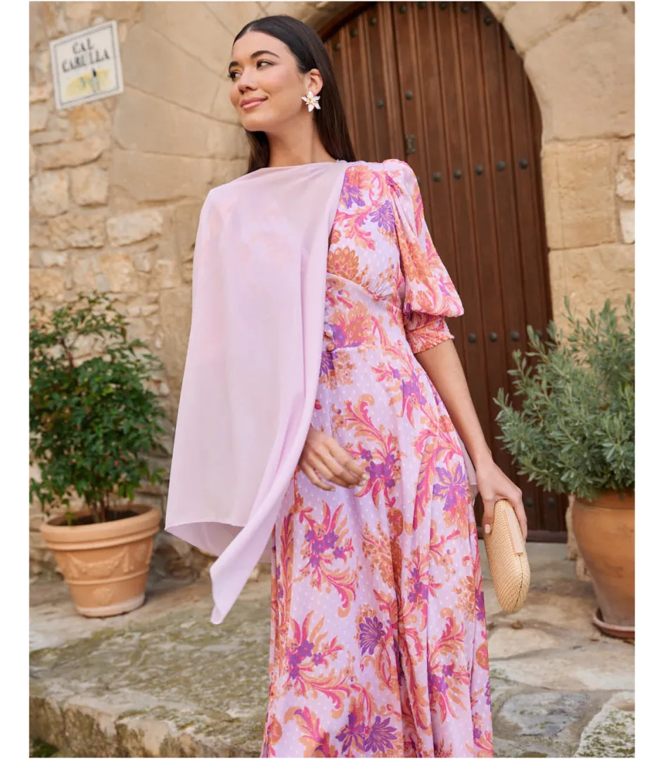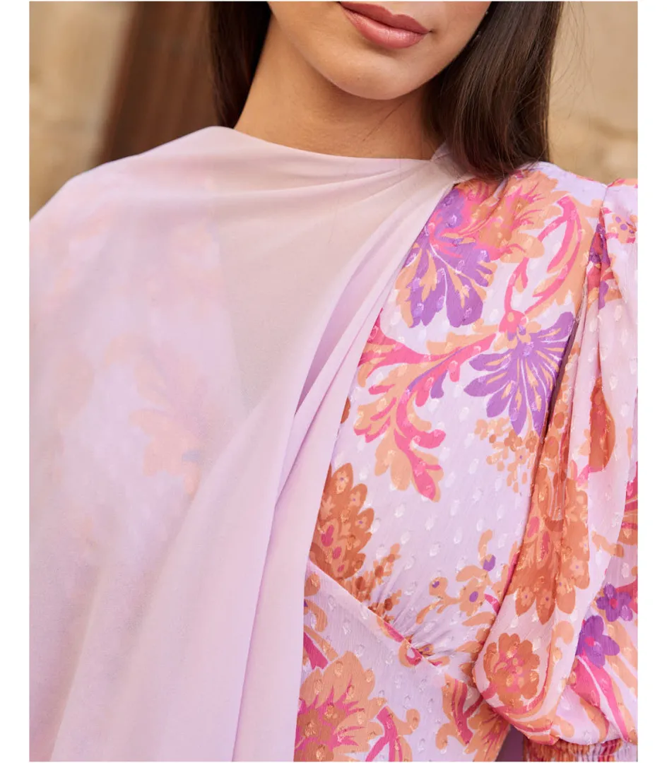 Capa lisa multiposición en color lila, unida. Ideal para acompañarte en todos tus planes o eventos y fácil de combinar con cualquier look. Fular agradable al tacto.