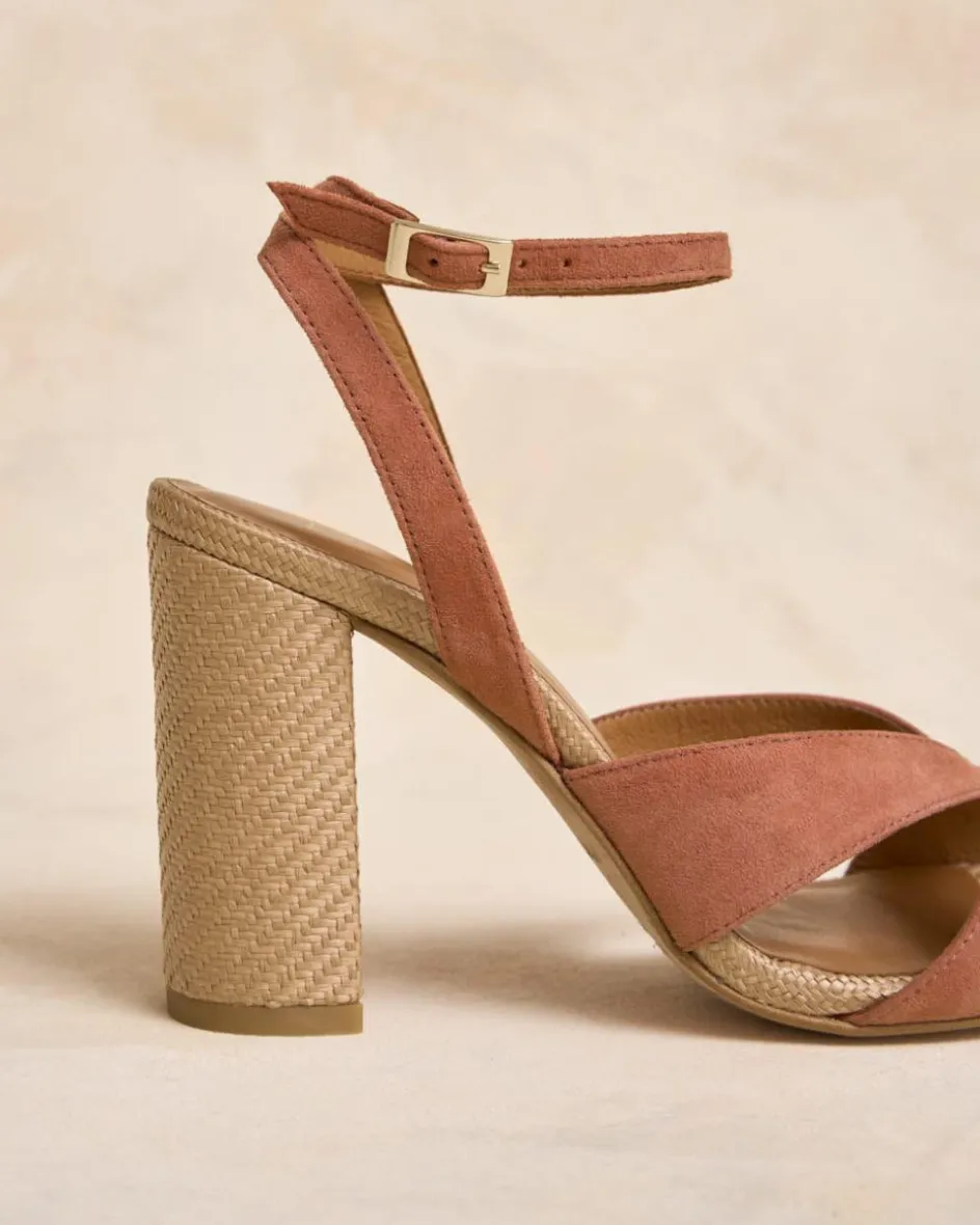 Sandalia de tacón de rafia en tono maquillaje. Punta cuadrada y abierta. Escote con detalle de dos cintas cruzadas entre sí. Cierre en el empeine mediante correa regulable con hebilla cuadrada. Tacón ancho, cuadrado de rafia para mayor comodidad. Un zapato muy femenino y elegante para los eventos de esta temporada.