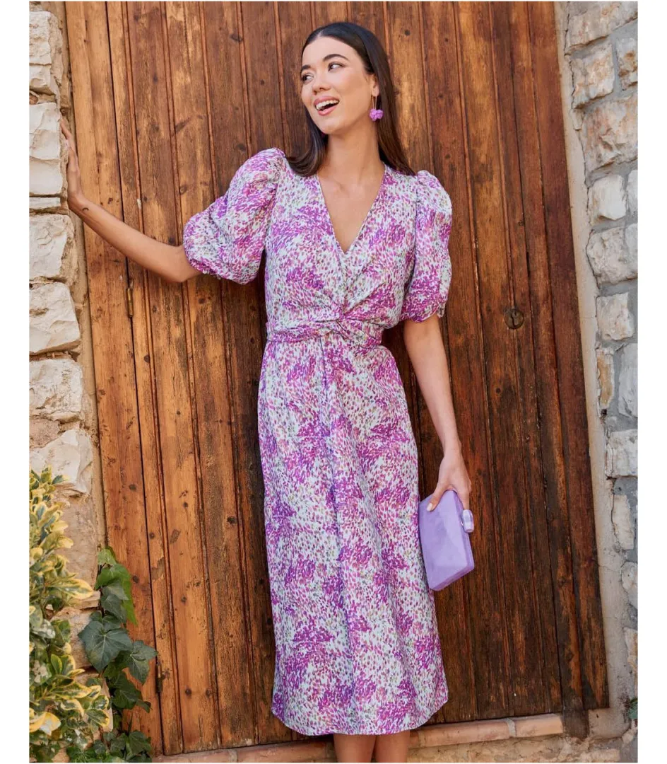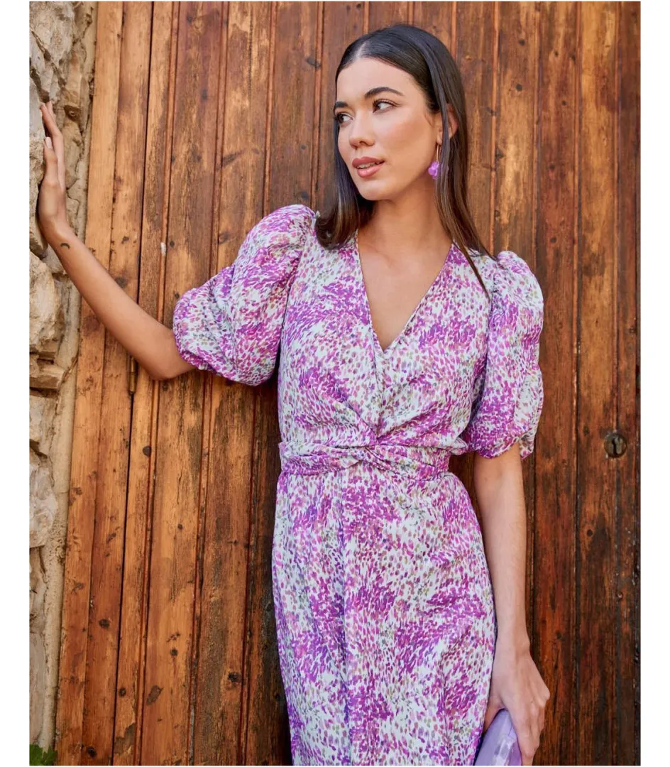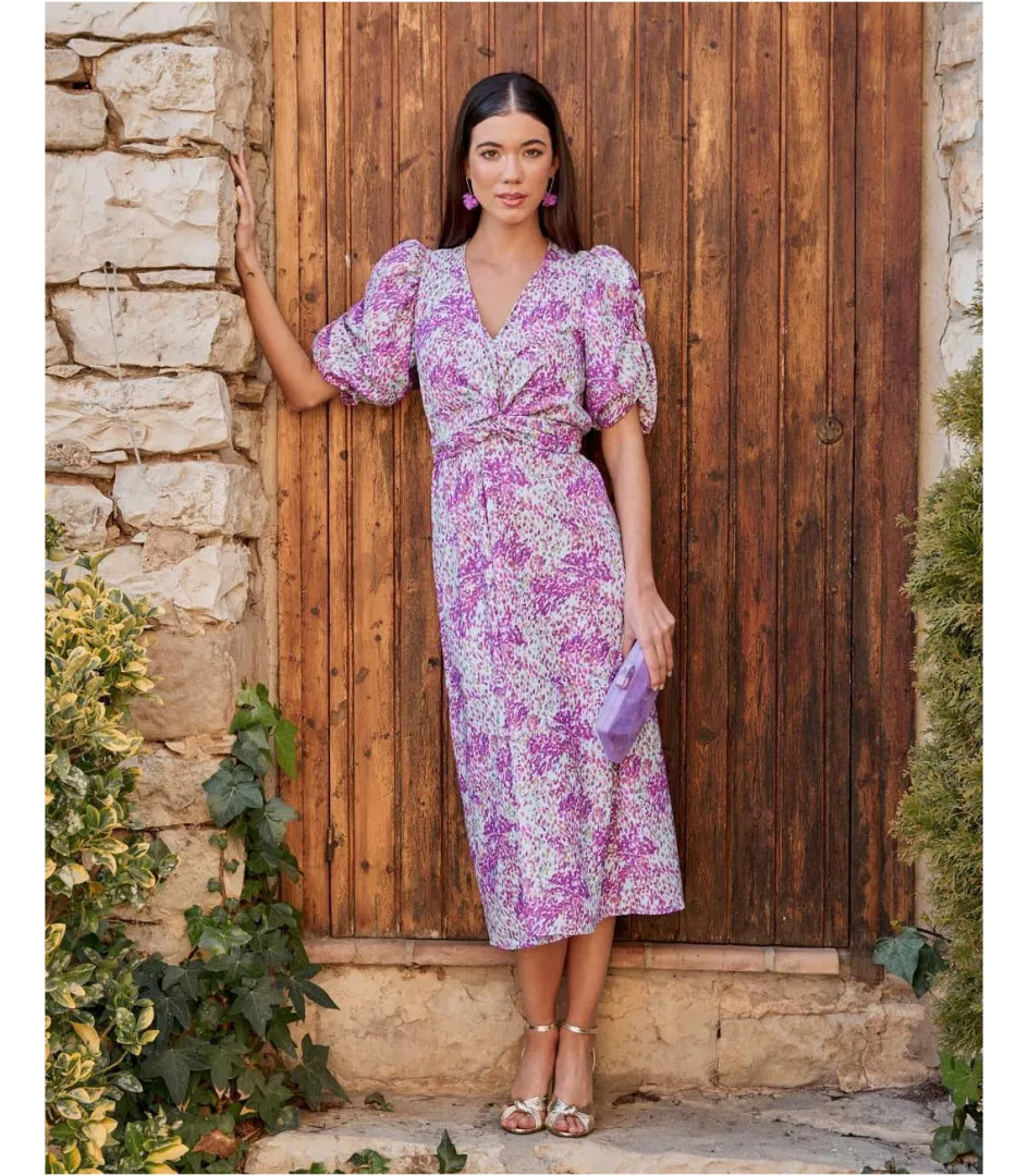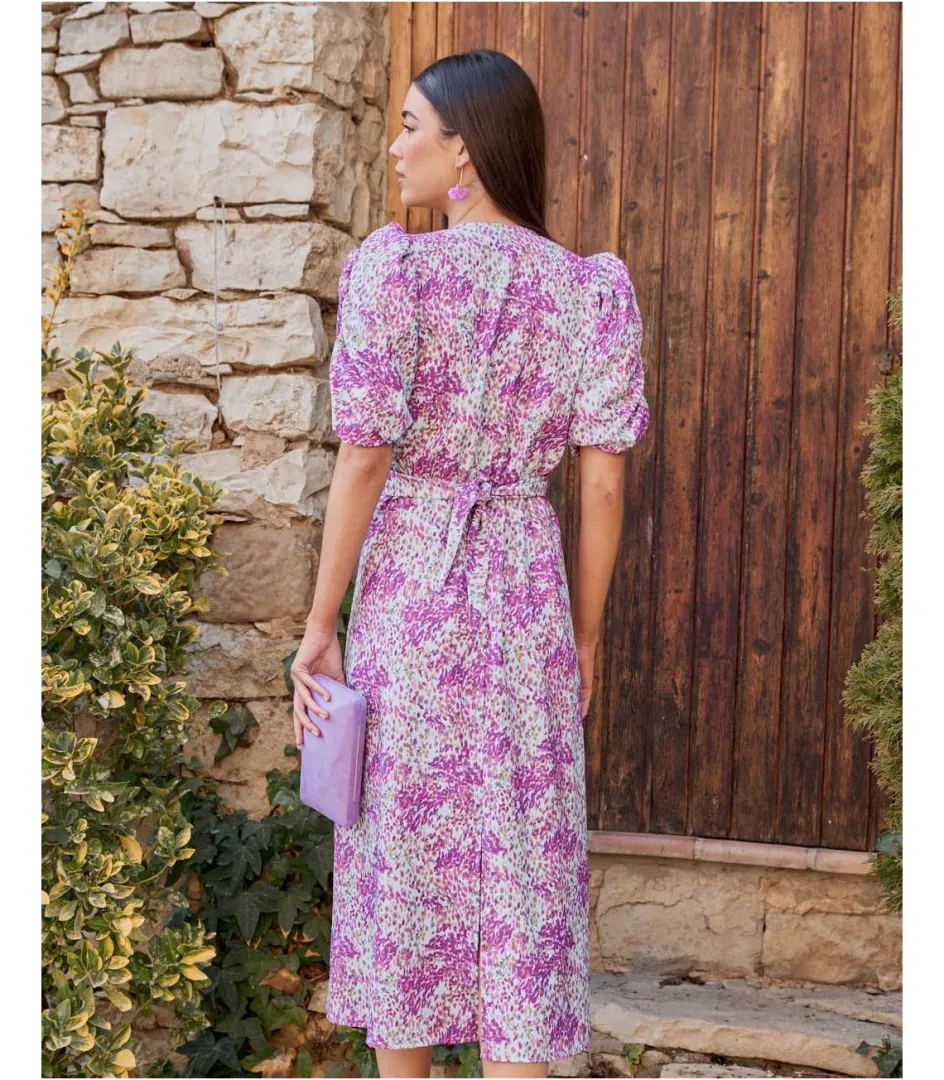 Vestido midi con estampado. Escote en pico con lazada versátil: se puede atar delante o detrás. Corte en la cintura con elástico. Manga corta. Falda suelta y ligeramente acampanada. Un vestido que se adapta a tu cuerpo de manera muy sencilla. Es ideal para cualquier evento. Vestido también ideal para el embarazo y lactancia.Vestido de invitada con un coste de devolución especial de 3,95€ que será descontado del importe total a devolver. Puedes consultar toda la información aquí. Ver másVer menos Referencia 178517 COMPOSICIÓN Y MEDIDAS:100% Poliéster Lola mide 1,77 y lleva la talla XS. Si dudas con la talla ideal, utiliza el recomendador online.CUIDADOS:Lavar y planchar del revés Ficha técnica Colores MORADOS Etiquetas: LITA V4720-01 – ENVÍOS, CAMBIOS Y DEVOLUCIONES Favorito544 ENVÍOS:Todos los envíos cuentan con gastos de envío, que dependen de la dirección de entrega.• Península y Portugal: 3,50€ | 2-4 días laborables.• Baleares: 6,50€ | Hasta 7 días laborables.• Países de la Unión Europea: 10,95€ | Hasta 10 días laborables.• Envíos a Europa (No UE): 15,95€ | Hasta 10 días laborables.• Resto del mundo*: Aprox 10€ | Hasta 15 días laborables.*NO hacemos envíos a Canarias, Ceuta, Melilla, Afganistán, Bielorusia, Congo, Bali, Myanmar, Nigeria, Rusia, Senegal, Somalia y Ucrania.¡Importante! En periodo de rebajas, los pedidos pueden tardar un poco más de lo habitual ¡Rogamos paciencia!CAMBIOS: ¡El envío con el cambio solicitado es gratuito!Pedidos realizados desde España:Plazo de 14 días laborables desde que recibes el paquete en casa.Pedidos realizados desde fuera de España:Plazo de 20 días naturales desde que realizamos el envío.*La gestión del envío del paquete de vuelta a nuestro almacén corre a cuenta del cliente, haciéndose cargo de los costes de este envío, mediante el courier de su elección o con nuestro servicio de DHL.En el primer trámite de cambio, el envío de vuelta es gratuito (tanto de talla como de producto). Permitimos DOS trámites de cambio, en caso de querer tramitar un segundo cambio, se descontarán los gastos de envío según destino.Una vez recibido el paquete en nuestro almacén, tramitaremos tu cambio en un plazo máximo de hasta 10 días laborables. Recibirás un correo de confirmación cuando este pedido de cambio esté listo para ser enviado.